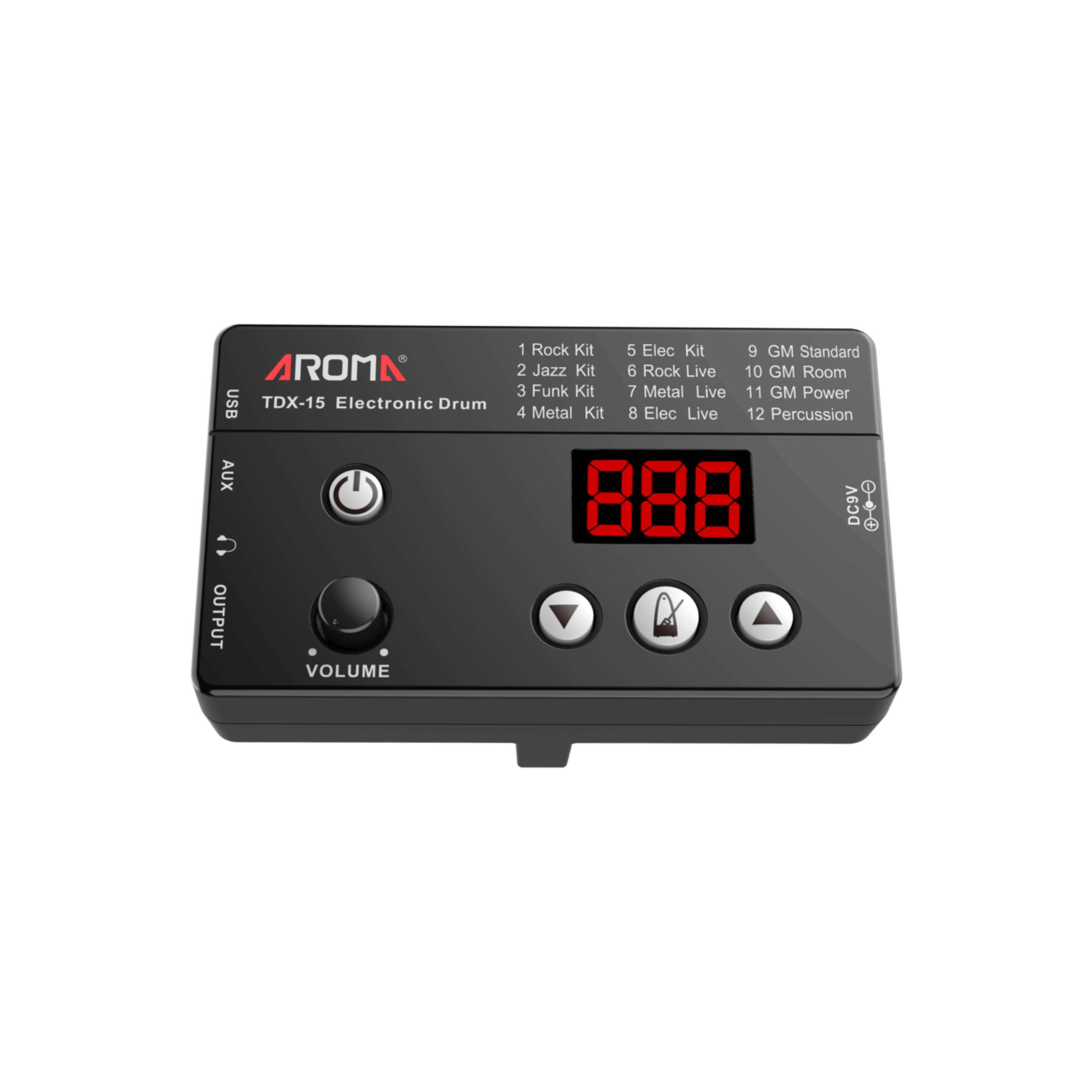 TDX-15 מבית Aroma היא סט דיגיטלי קומפקטי ושקט שמוכן לנגינה מהקופסה, עם תחושה ריאליסטית, ניידות גבוהה ותאימות לבמה, חזרה וכיתה.