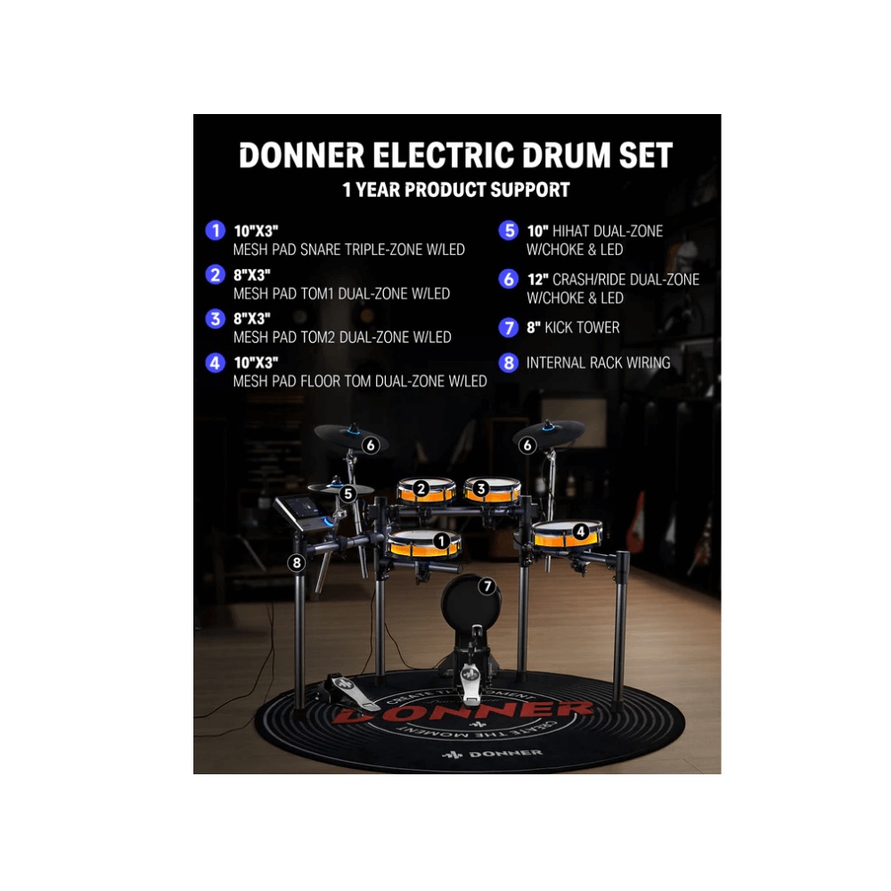מערכת תופים חכמה Donner BACKBEAT EC6878 – תופים אלקטרוניים מתקדמים לנגינה מקצועית ולימוד