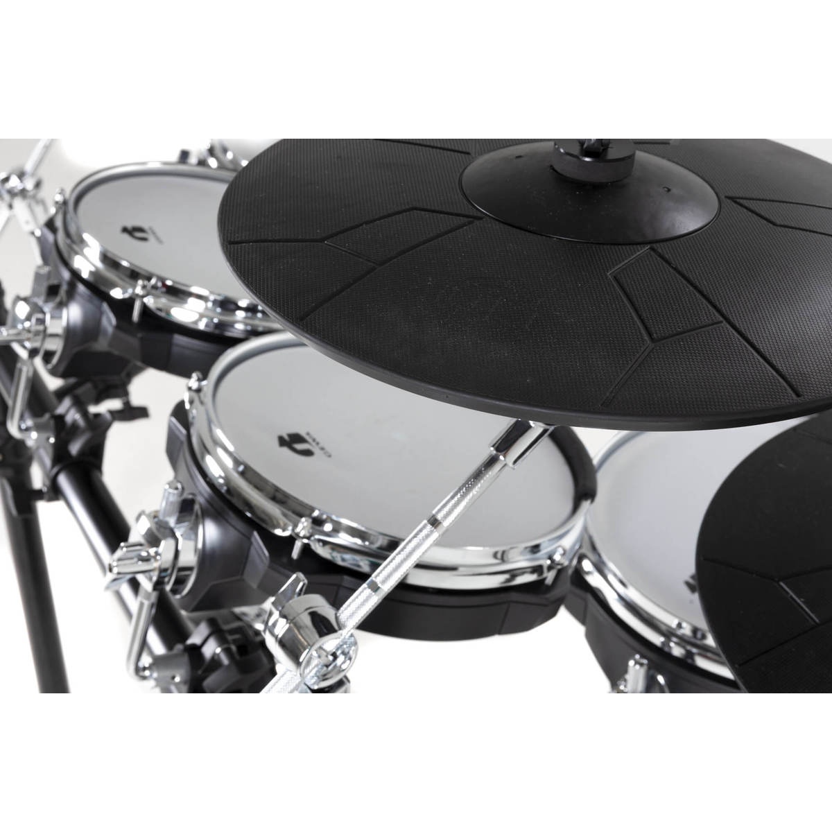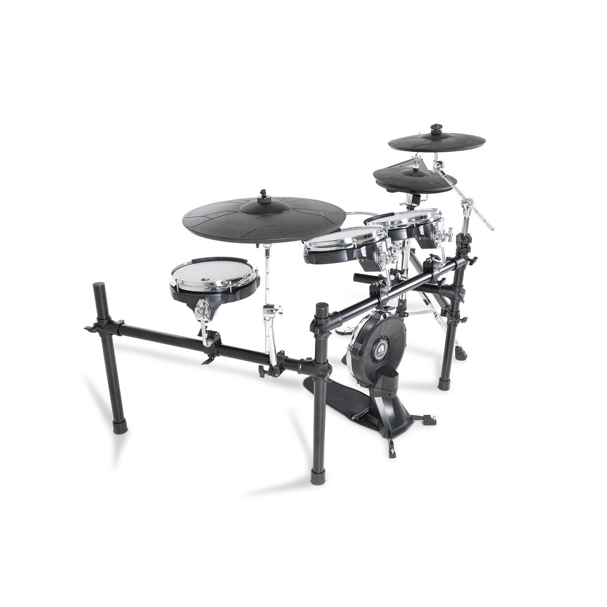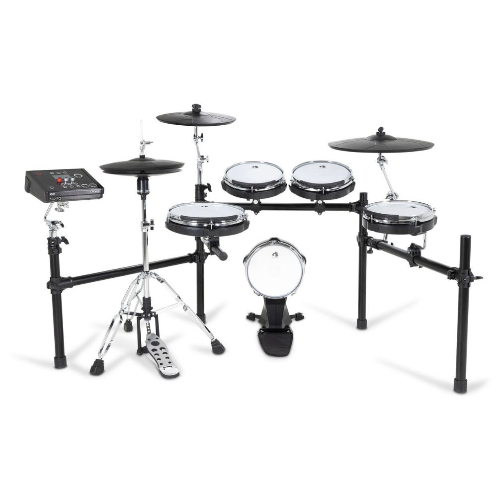 ???? סט מושלם לכל נגן – מערכת תופים דיגיטלית מקצועית הכוללת סנר, 2 טמטמים, פלור טאם, בייס דראם ו-3 מצילות, עם עיצוב שחור-לבן ייחודי ואיכות בנייה בלתי מתפשרת.