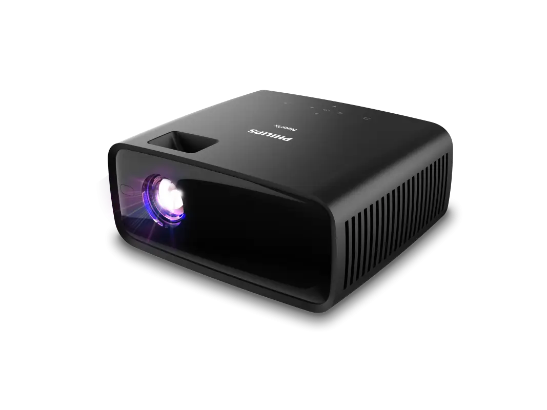 הPhilips NeoPix 320 מקרן קולנוע ביתי Full HD 1080p עד 80 אינץ’, עם טכנולוגיית LED חסכונית, אפליקציות סטרימינג מובנות כמו Netflix ו-YouTube, מערכת שמע 2.1 ויכולת שיקוף מסך Wi-Fi.