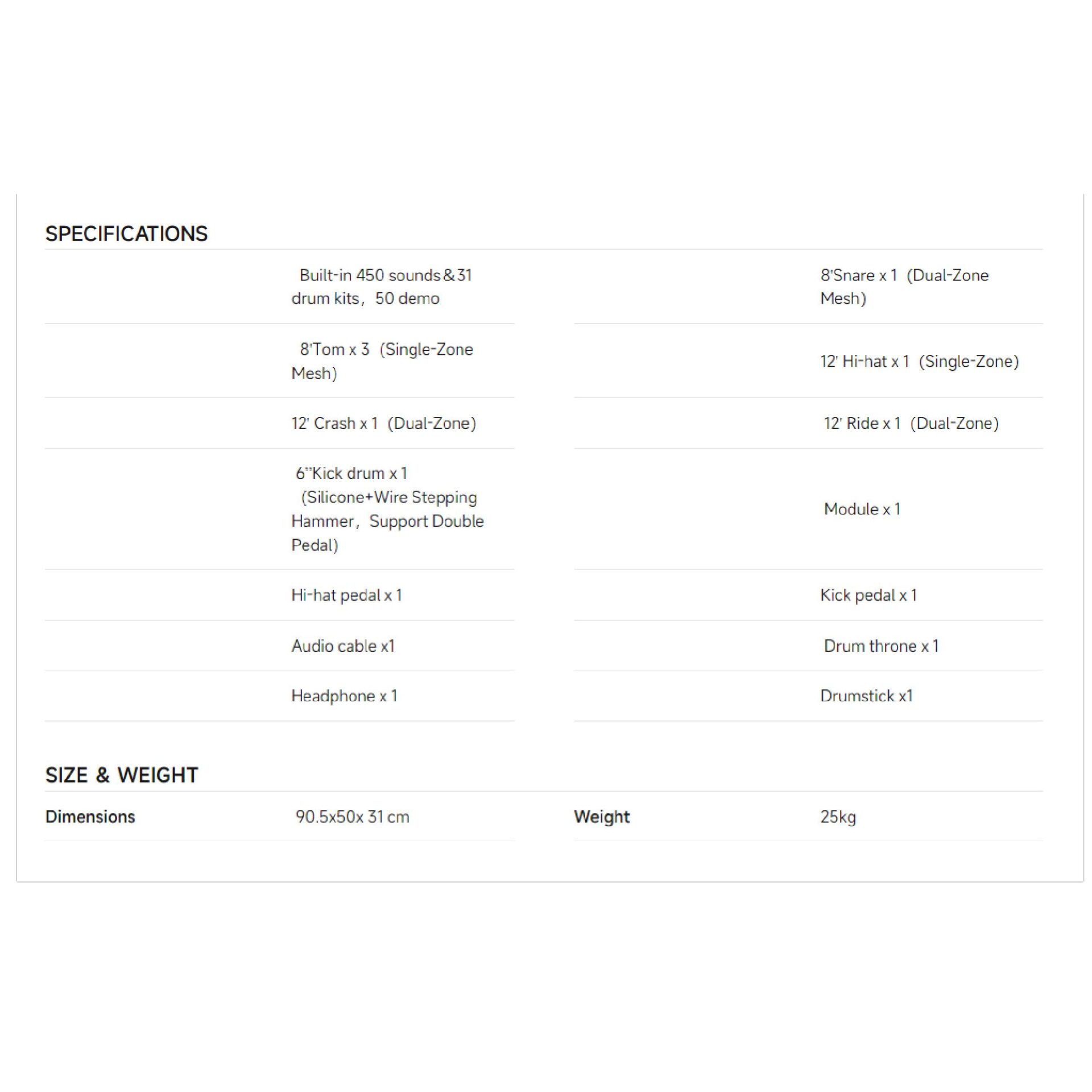 סט תופים דיגיטלי עם אביזרים DONNER DED-200P עם כסא ואוזניות | פדי Mesh ותרגול שקט