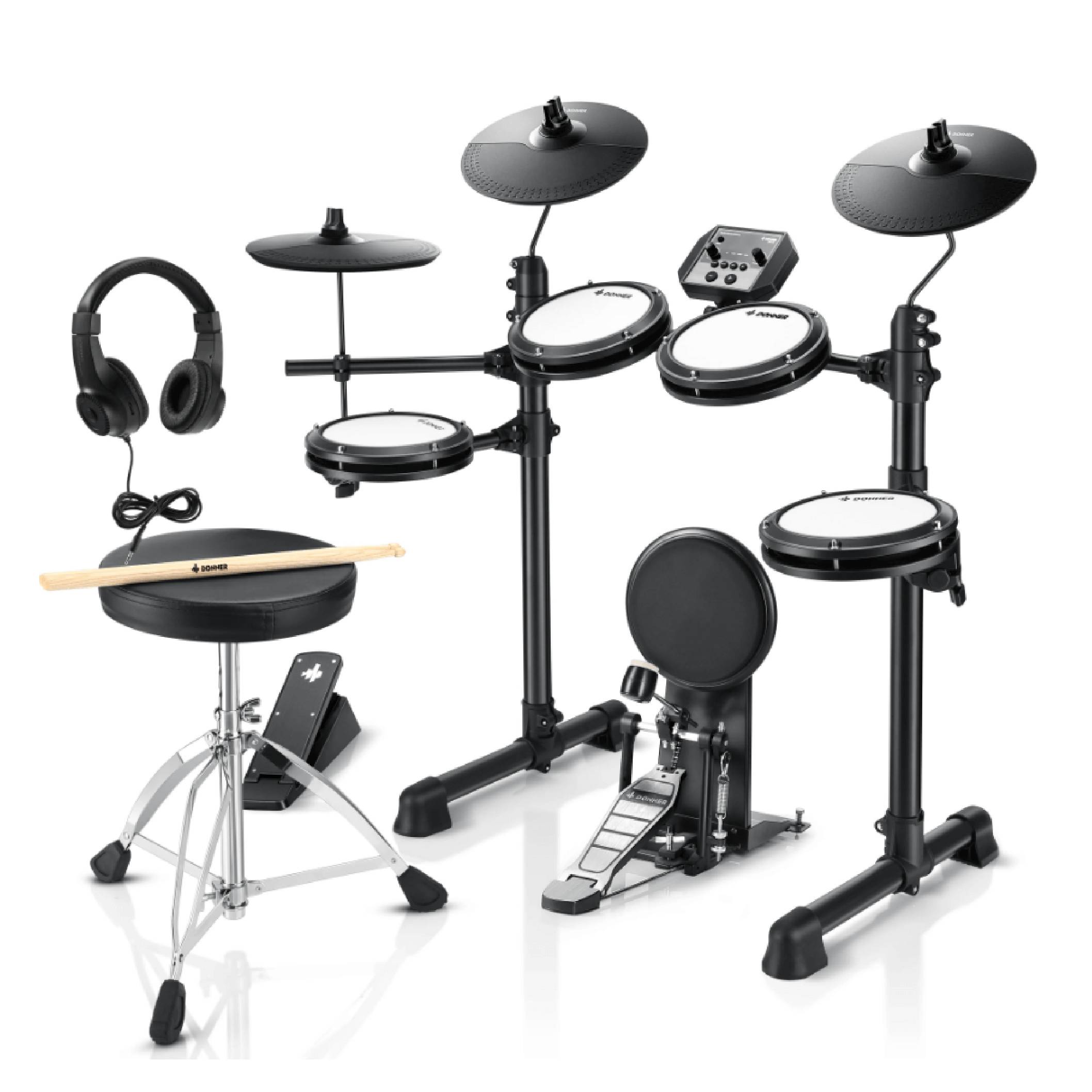 ערכת תופים אלקטרונית DONNER DED-80P עם כסא ואוזניות EC6756 – סט דיגיטלי למתחילים שמרגיש אקוסטי
