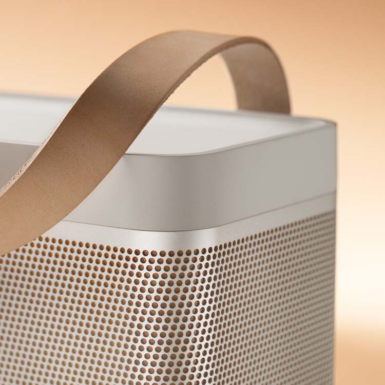 רמקול Beolit 20, רמקול נייד, רמקול אלחוטי, רמקול בלוטוס, רמקול יוקרתי, סאונד True360, באס עמוק, חיי סוללה ארוכים, טעינה אלחוטית Qi, טעינת USB C, קישוריות יציבה, סטריאו זוגי, עיצוב סקנדינבי, גוף אלומיניום, רצועת עור, רמקול לבית ולחוץ.