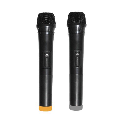 רמקול מוגבר עם סוללה נטענת, נגן mp3, זוג מיקרופונים UHF אלחוטיים מובנים ו Bluetooth