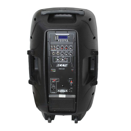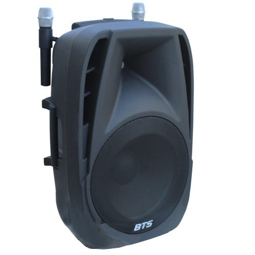 רמקול מוגבר עם סוללה נטענת, נגן mp3, זוג מיקרופונים UHF אלחוטיים מובנים ו Bluetooth
