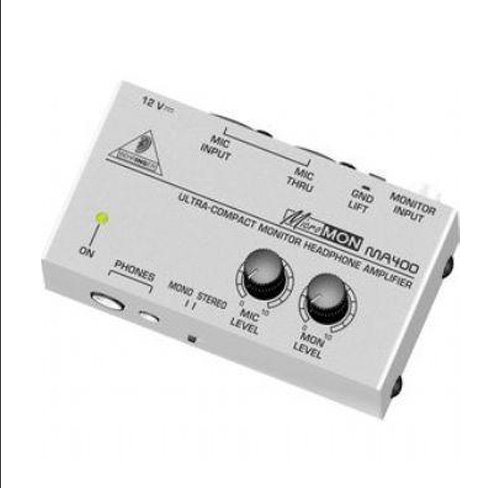ה- Micromon MA400 מבית Behringer הוא מגבר אוזניות אולטרה קומפקטי ליישום בסטודיו ועל הבמה. כולל חיבורי מיקרופון פנימיים וחיצוניים באמצעות מחברי XLR עם מתג הרמת קרקע משולב, יציאות אוזניות בעלות הספק גבוה עם שקעים בגודל 1/4″ ו-8″, התאמות מיקרופון, מוניטור ומתג מונו / סטריאו.