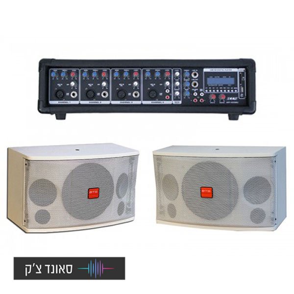 סט הגברה הכולל שני רמקולים 120W, מיקסר מוגבר 6 ערוצים עם כניסת USB ואפקט שירה.