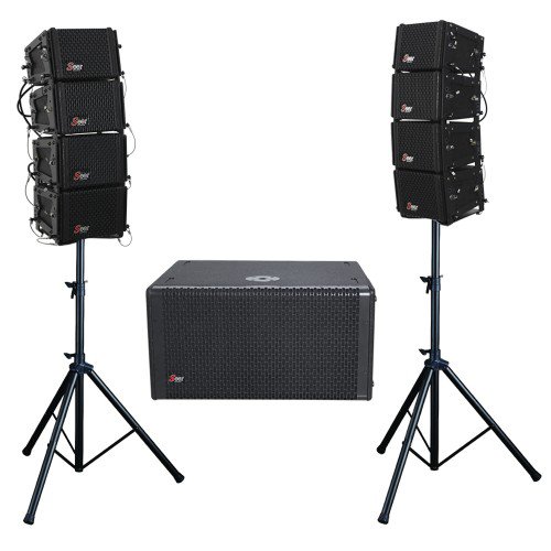 כוללת סאב וופר 10″ כפול, 8 רמקולים טופ 4″, מגבר מובנה 2.1 ואביזרים.
